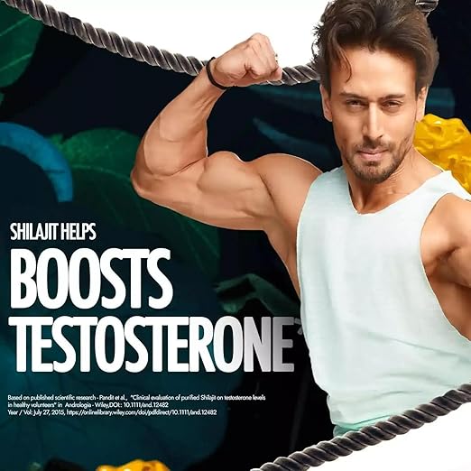 Each 1 g contains: Extract of: Coffee (Coffea arabica) Sd. 200 mg, Ashwagandha (Withania somnifera) Rt. 133.33 mg, Gokshura (Tribulus terrestris) Fr. 77.92 mg, Haldi (Curcuma longa) Rz. 50.00mg, Kali Musli (Curculigo orchioides) Rz. 30.83mg, Essential oil - Elaichi (Elettaria cardamomum) Fr. 7.50mg, Mineral & Metal of :- Shilajit (Asphaltum) Exd. 333.33 mg, Swarna bhasma 0.42 mg, Excipients – Q.S.